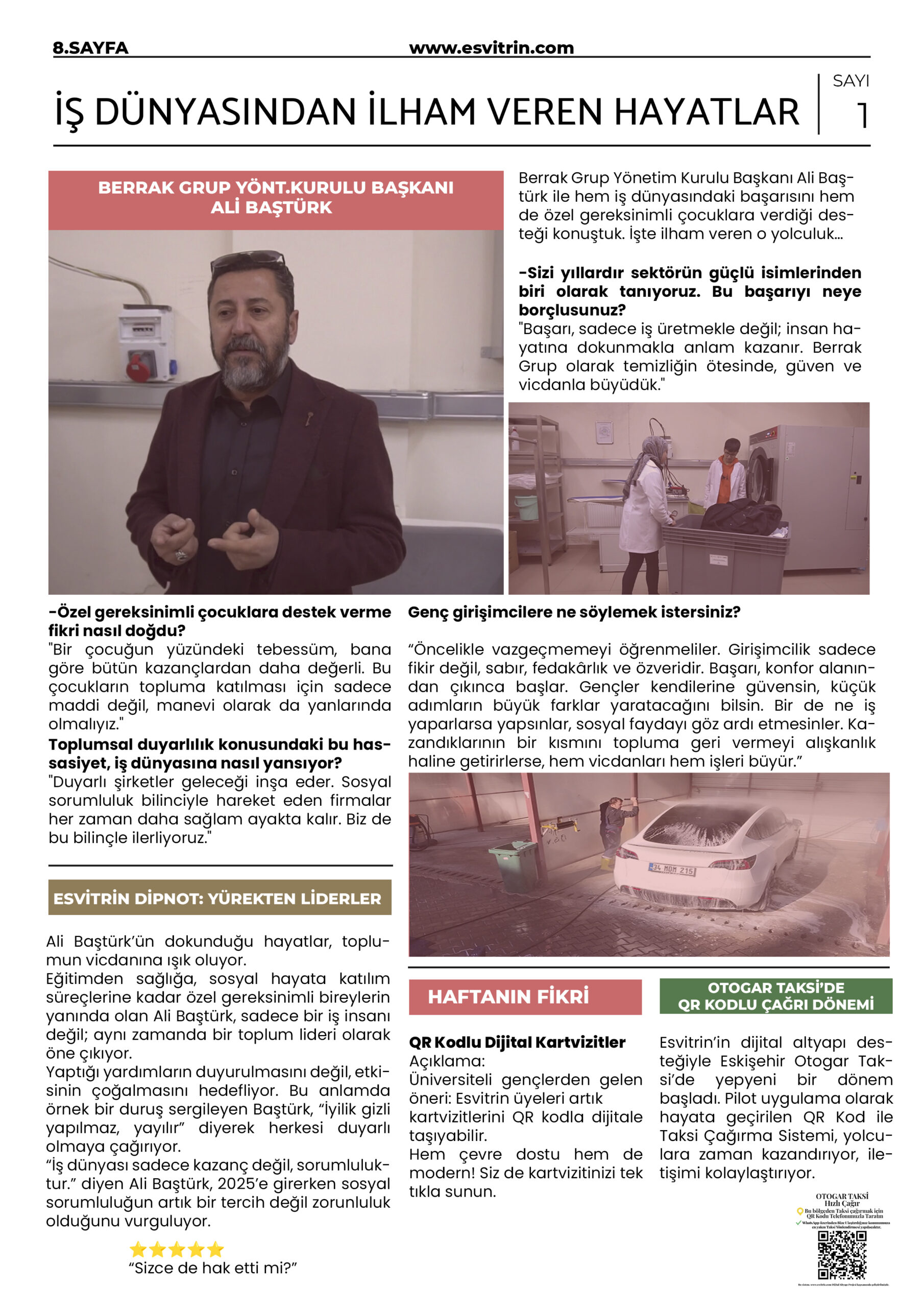 Eğitimden sağlığa, sosyal hayata katılım süreçlerine kadar özel gereksinimli bireylerin yanında olan Ali Baştürk, sadece bir iş insanı değil; aynı zamanda bir toplum lideri olarak öne çıkıyor. Yaptığı yardımların duyurulmasını değil, etkisinin çoğalmasını hedefliyor. Bu anlamda örnek bir duruş sergileyen Baştürk, “İyilik gizli yapılmaz, yayılır” diyerek herkesi duyarlı olmaya çağırıyor.