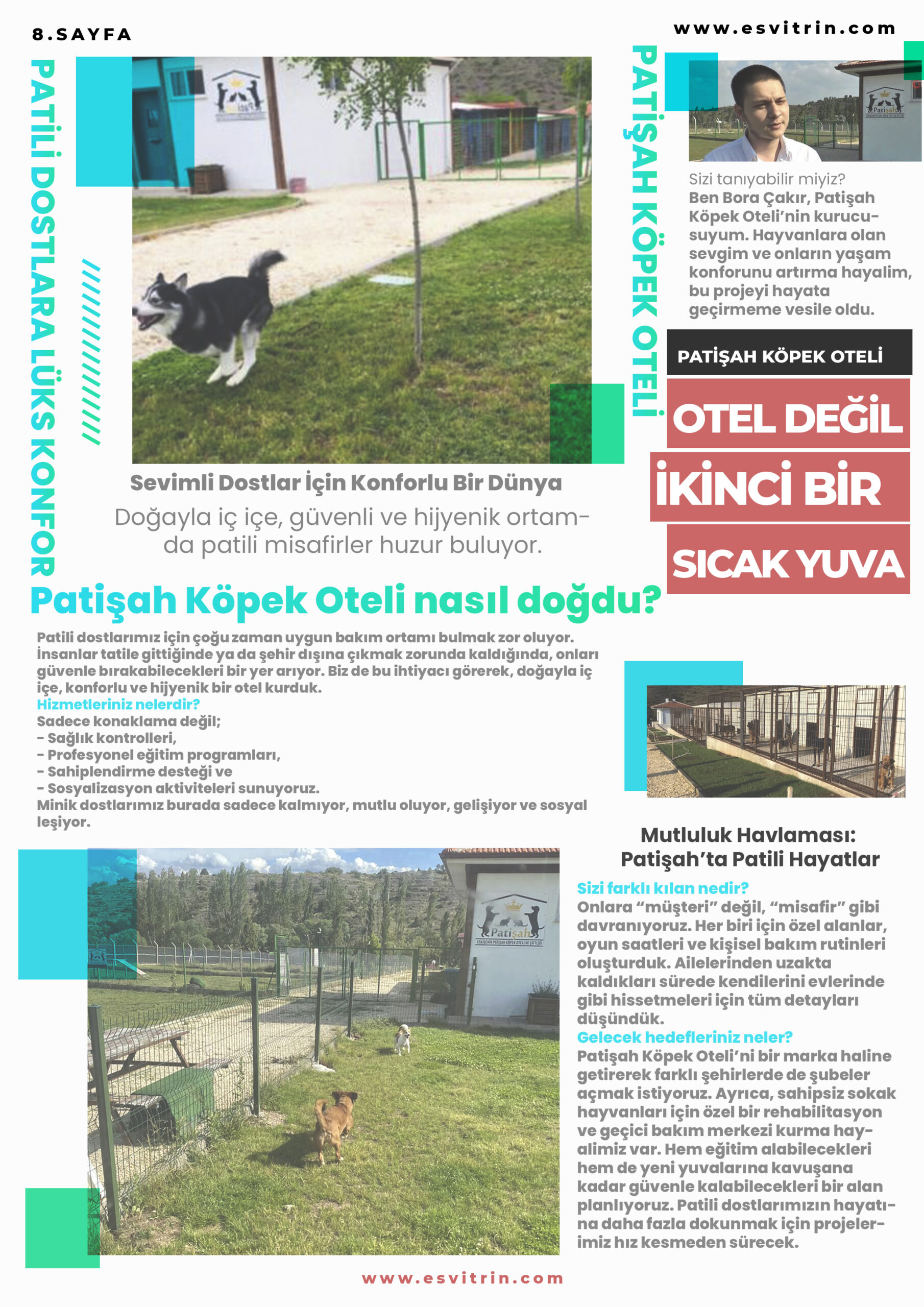 Patişah Köpek Oteli’ni bir marka haline getirerek farklı şehirlerde de şubeler açmak istiyoruz. Ayrıca, sahipsiz sokak hayvanları için özel bir rehabilitasyon ve geçici bakım merkezi kurma hayalimiz var. Hem eğitim alabilecekleri hem de yeni yuvalarına kavuşana kadar güvenle kalabilecekleri bir alan planlıyoruz. Patili dostlarımızın hayatına daha fazla dokunmak için projelerimiz hız kesmeden sürecek.