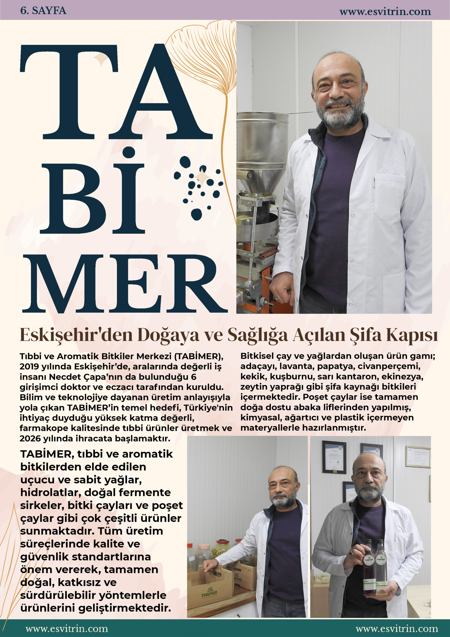 Tıbbi ve Aromatik Bitkiler Merkezi (TABİMER), 2019 yılında Eskişehir’de, aralarında değerli iş insanı Necdet Çapa’nın da bulunduğu 6 girişimci doktor ve eczacı tarafından kuruldu. Bilim ve teknolojiye dayanan üretim anlayışıyla yola çıkan TABİMER’in temel hedefi, Türkiye’nin ihtiyaç duyduğu yüksek katma değerli, farmakope kalitesinde tıbbi ürünler üretmek ve 2026 yılında ihracata başlamaktır.